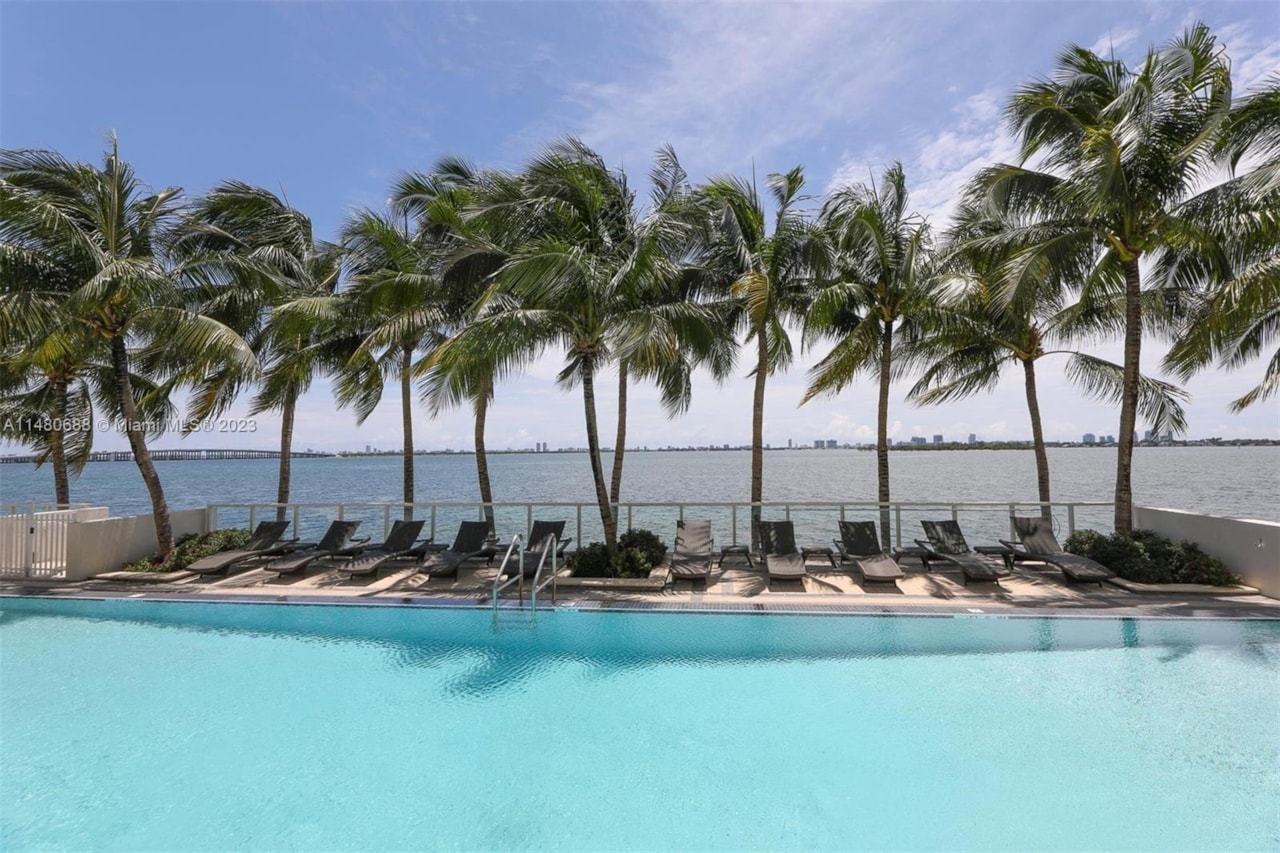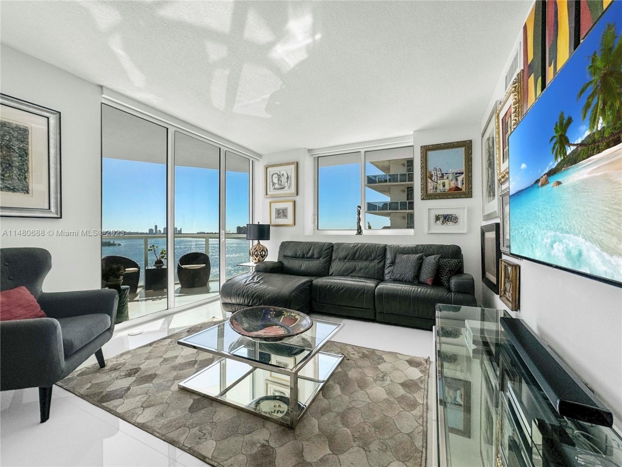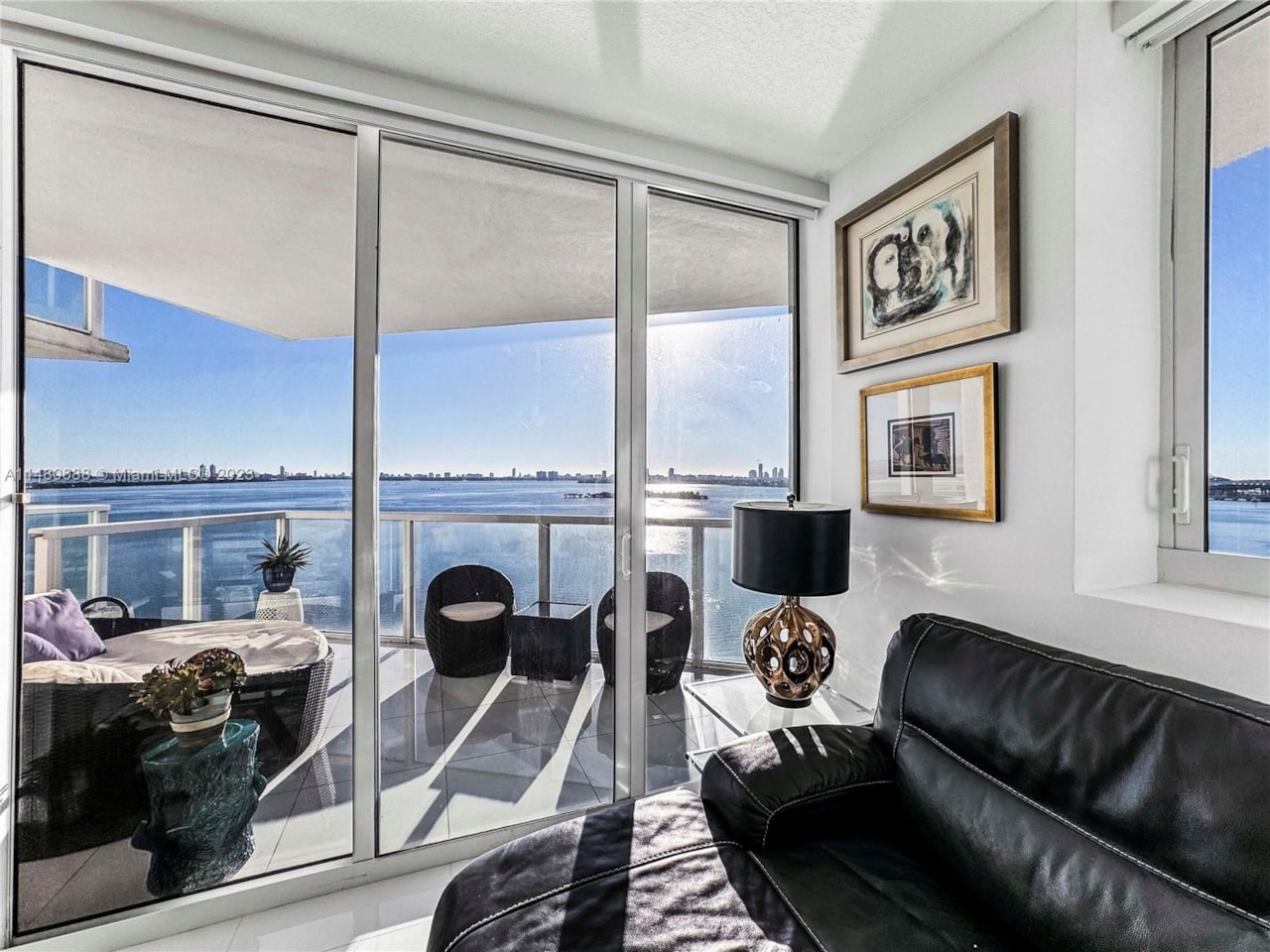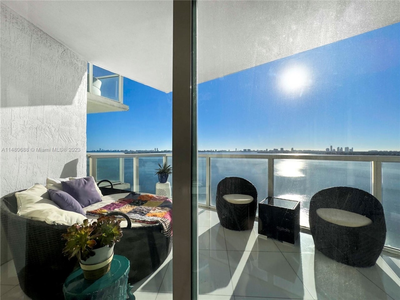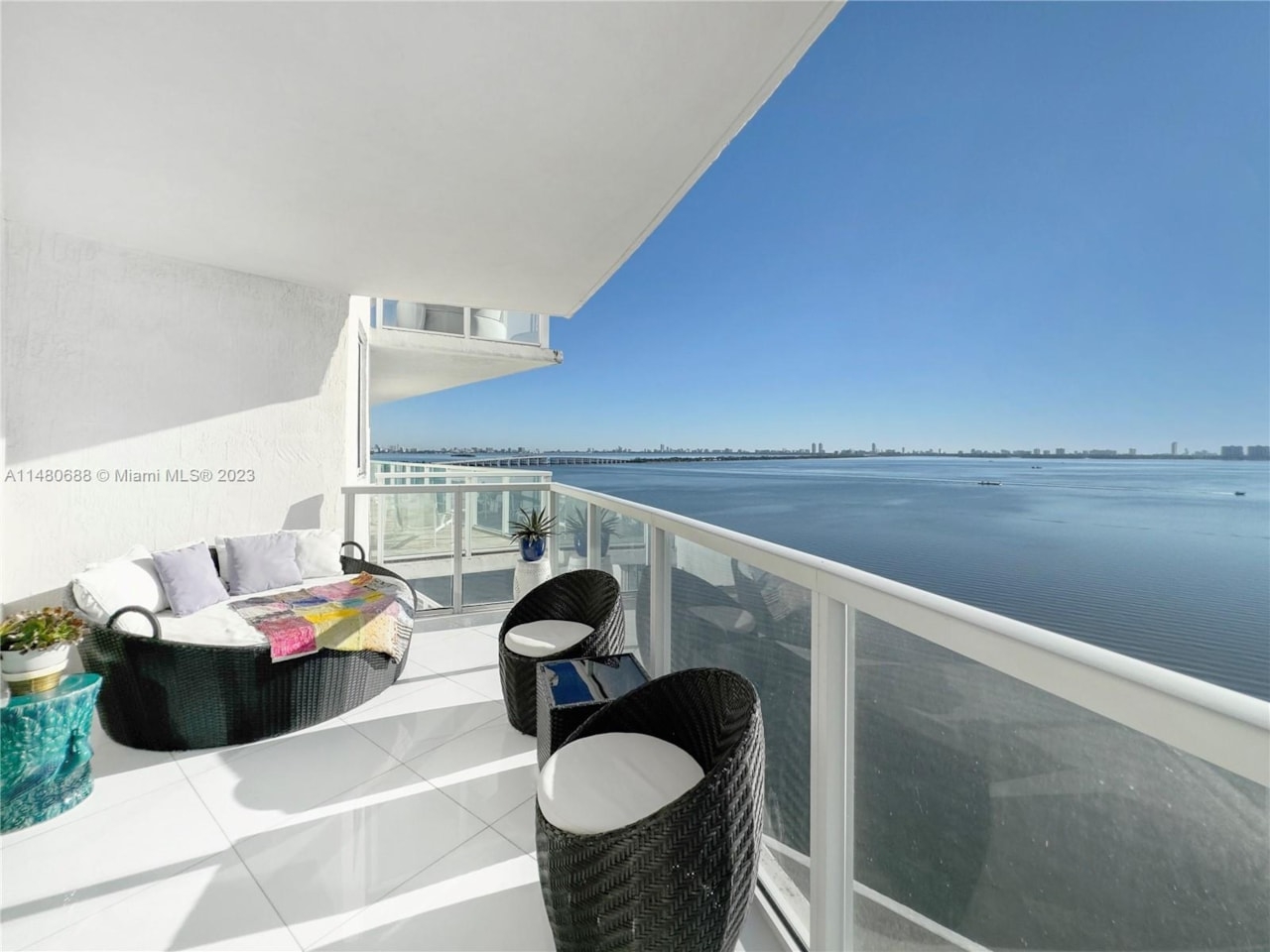 Welcome to Onyx on the Bay 1001, ultra-upgraded, luxury flow-thru, 2/2.5 perched over pristine Biscayne Bay. Unobstructed bay views; white porcelain & gray LVP floors; expansive kitchen w/Venatino quartz waterfall island & custom wood cabinets; waterfront great room; 2 large bedroom suites with private bathrooms, custom built walk-in closets; new A/C, whole home H20 filtration & automation- lighting, A/C, window treatments, & smoke/carbon monoxide detection; & a powder room.Floor-to-ceiling impact glass windows & doors open up to a 36 ft sunset balcony from one bedroom & a 30 ft sunrise balcony from the great room.Concierge; renovated infinity edge pool w/spa; sauna, steam, weight, yoga, & cardio; 8th floor pet area w/grills; party rooms; & billiards. 1 assigned + guest parking.