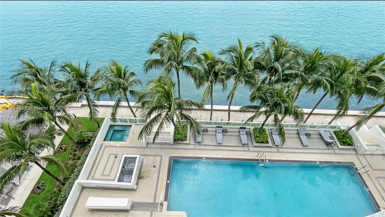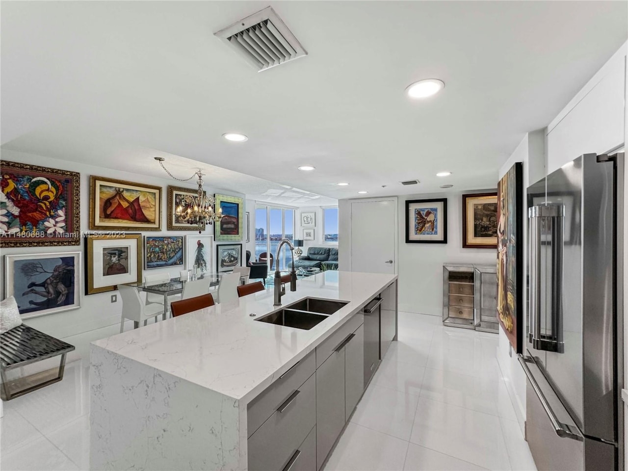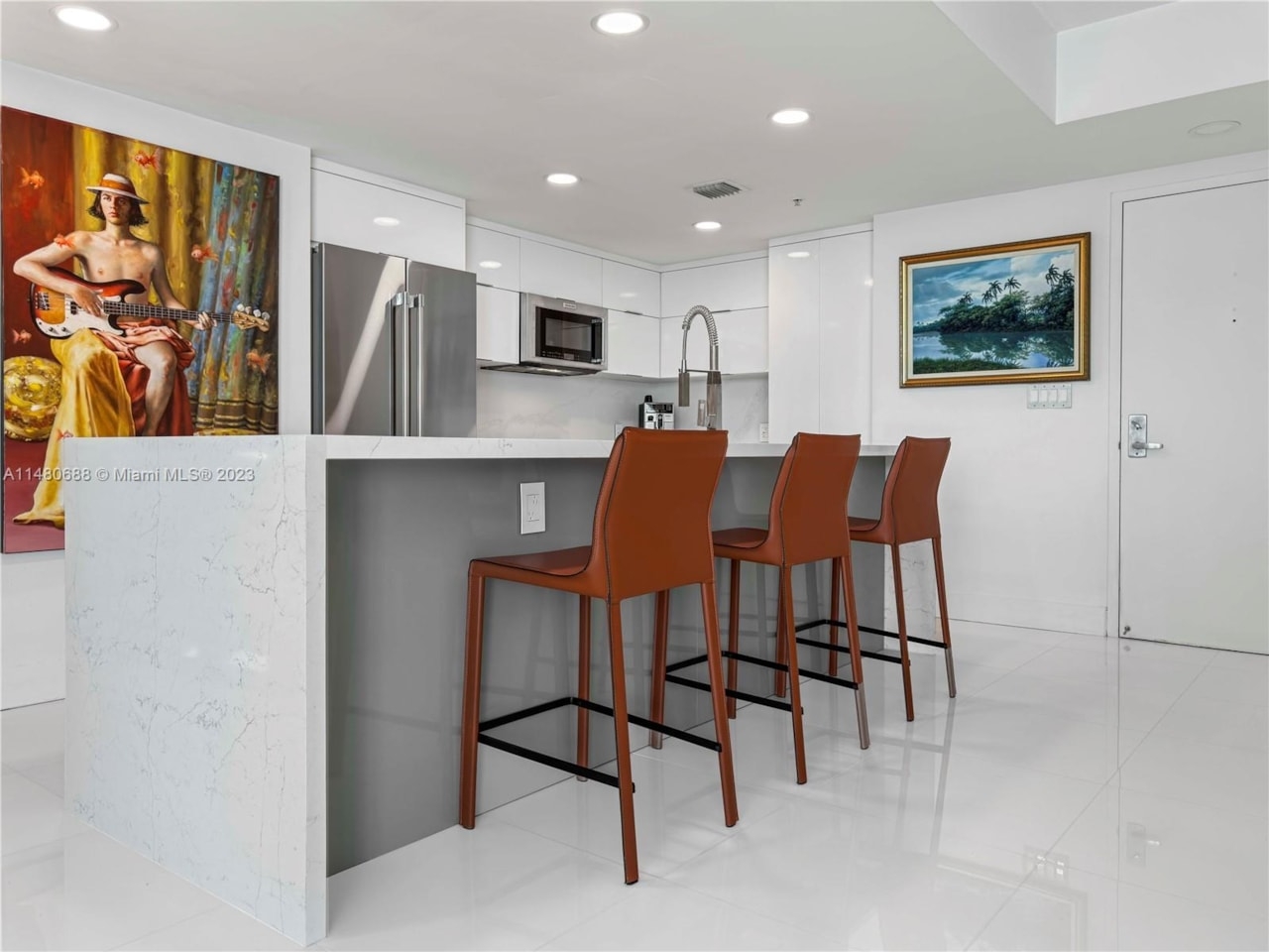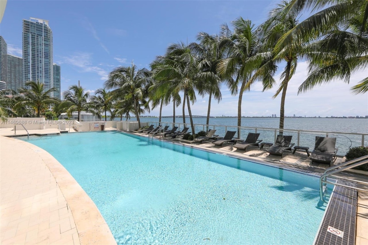 Welcome to Onyx on the Bay 1001, ultra-upgraded, luxury flow-thru, 2/2.5 perched over pristine Biscayne Bay. Unobstructed bay views; white porcelain & gray LVP floors; expansive kitchen w/Venatino quartz waterfall island & custom wood cabinets; waterfront great room; 2 large bedroom suites with private bathrooms, custom built walk-in closets; new A/C, whole home H20 filtration & automation- lighting, A/C, window treatments, & smoke/carbon monoxide detection; & a powder room.Floor-to-ceiling impact glass windows & doors open up to a 36 ft sunset balcony from one bedroom & a 30 ft sunrise balcony from the great room.Concierge; renovated infinity edge pool w/spa; sauna, steam, weight, yoga, & cardio; 8th floor pet area w/grills; party rooms; & billiards. 1 assigned + guest parking.