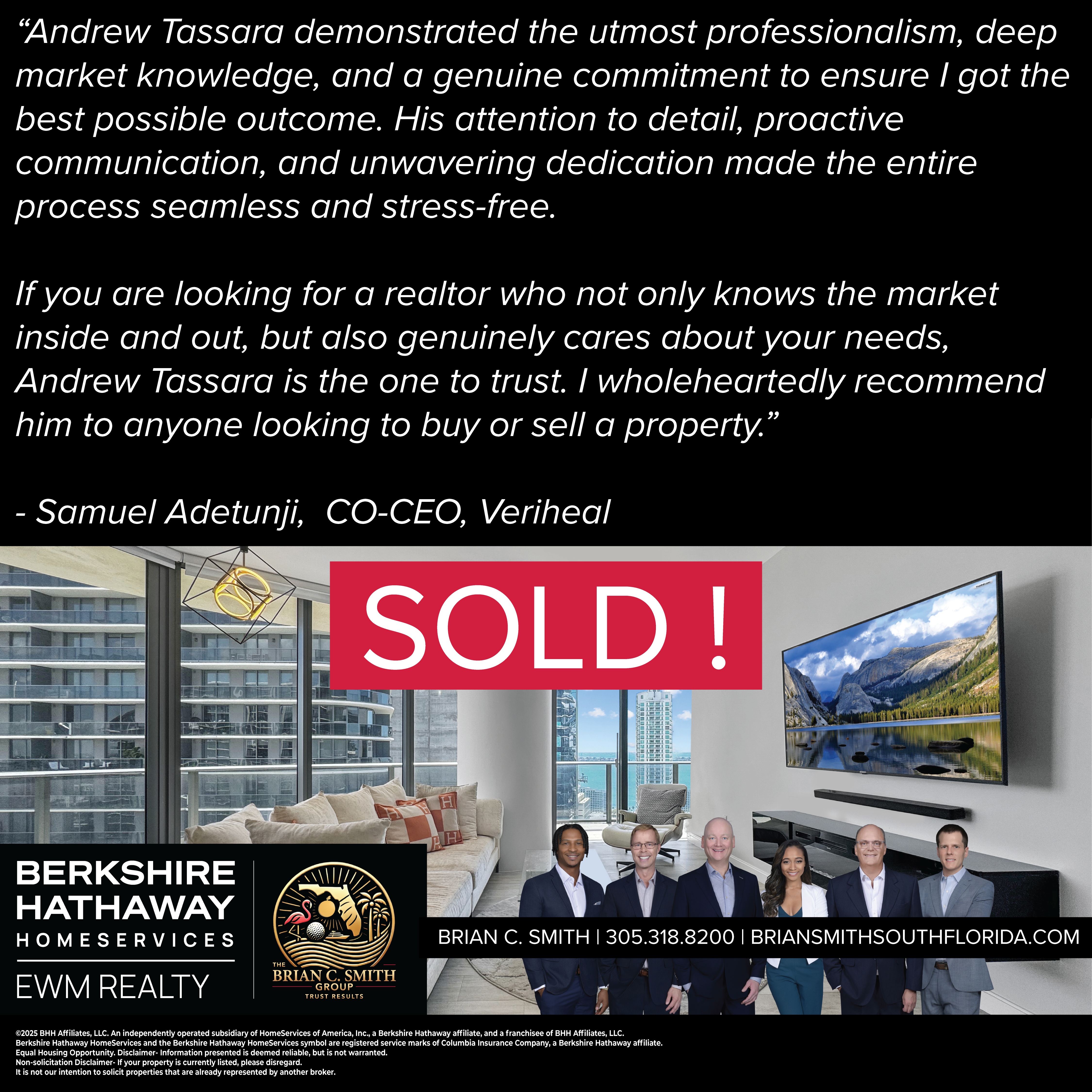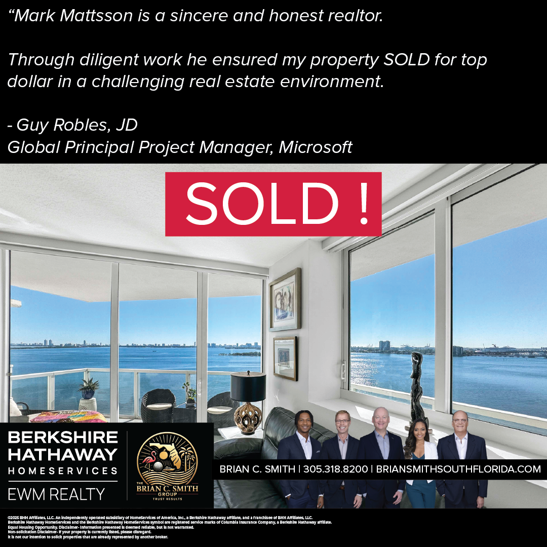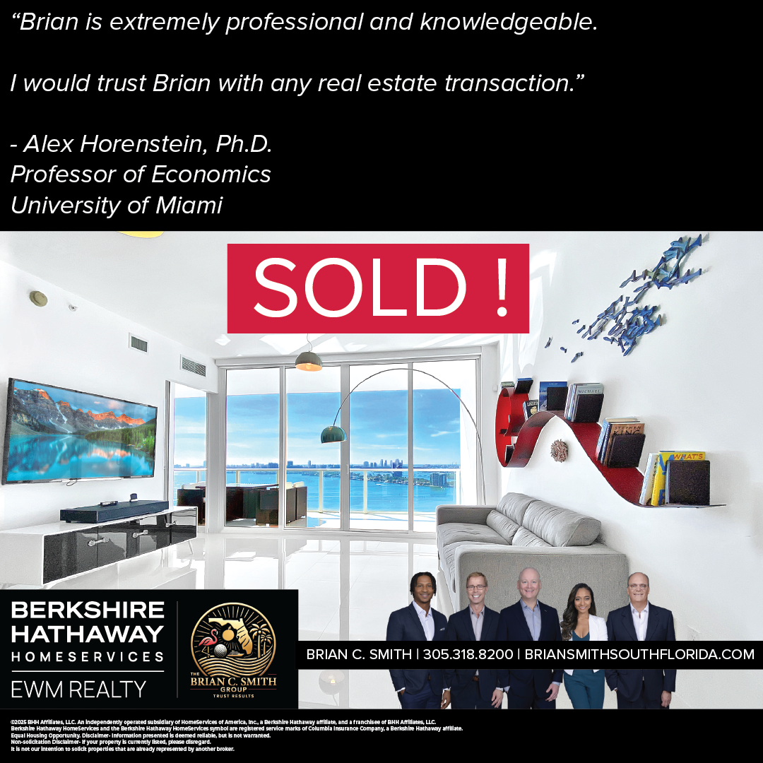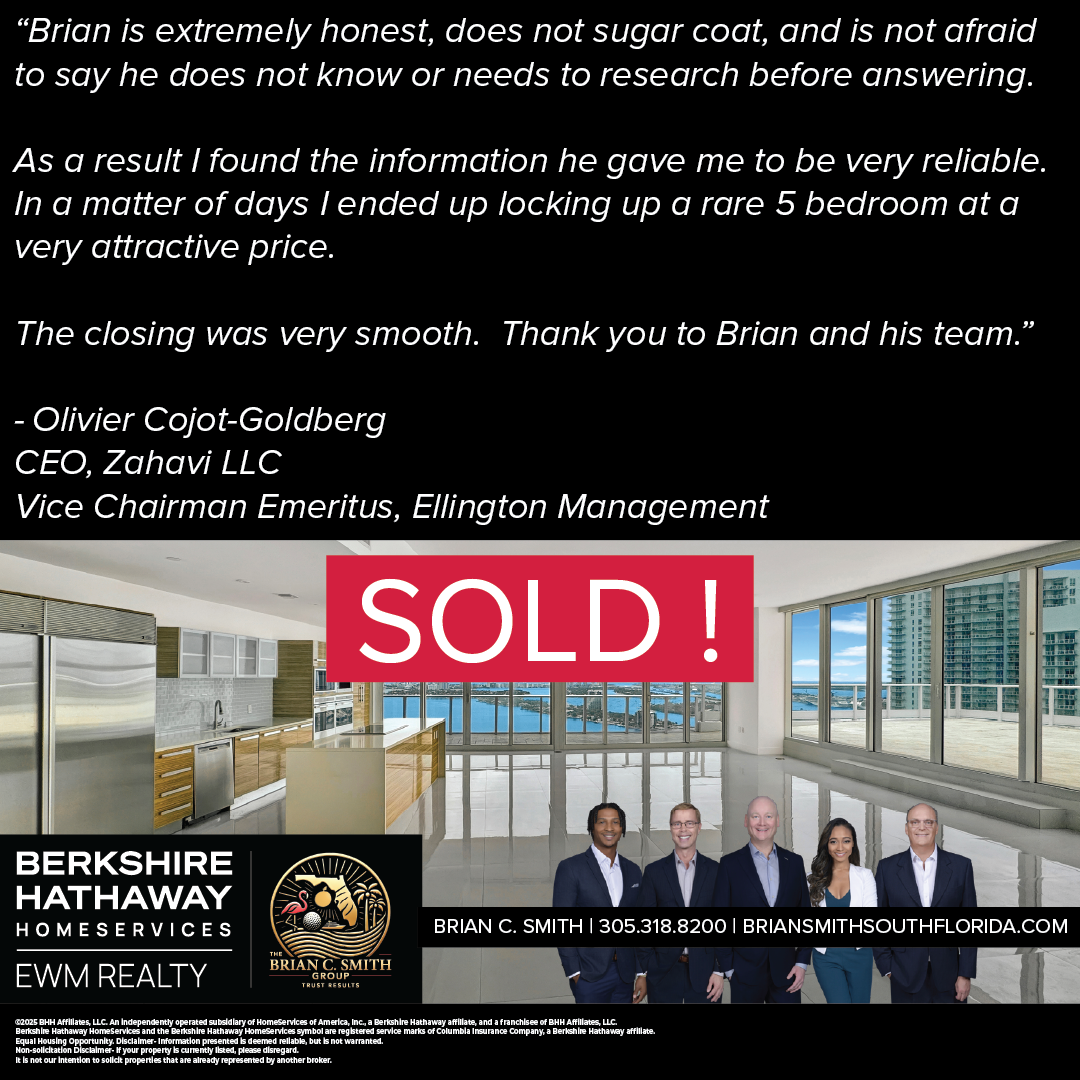 "Brian C. Smith helped me negotiate a great deal on my Miami Beach home. He is honest, thoughtful, and very professional. In a town with a ton of realtors, Brian stands out on top!"
