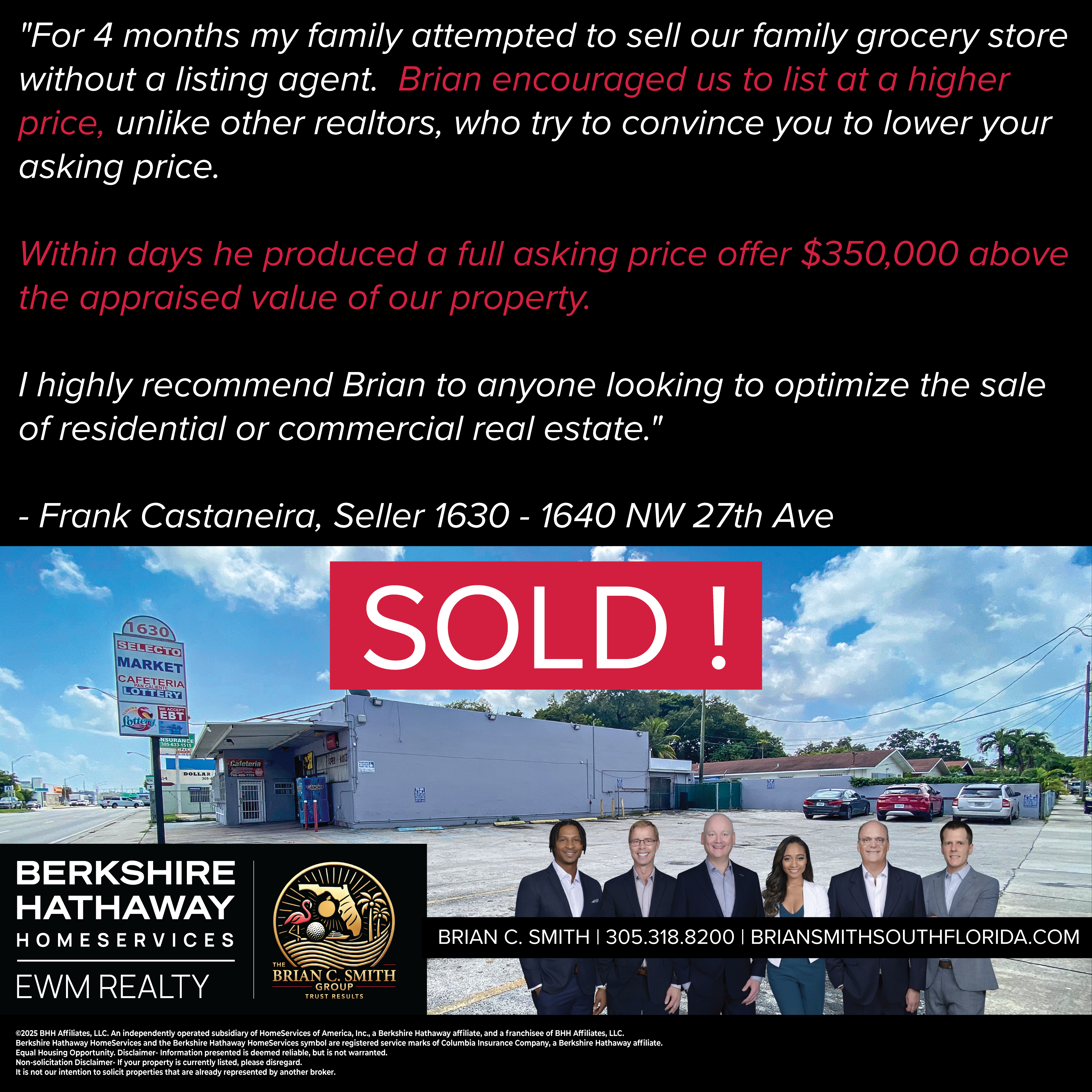 “For 4 months my family attempted to sell our family grocery store without a listing agent. Brian approached us politely with genuine curiosity and desire to help. We decided to list our property for sale with his team after serious discernment and listening to how Brian could help us. Brian encouraged us to list at a higher price, unlike other realtors, who try to convince you to lower your asking price. Within days he produced a full asking price offer $350,000 above the appraised value or our property. Throughout the Christmas holiday Brian kept us appraised and followed up to the very end to ensure our closing went off without a hitch. I highly recommend Brian to anyone looking to optimize the sale of residential or commercial real estate.”